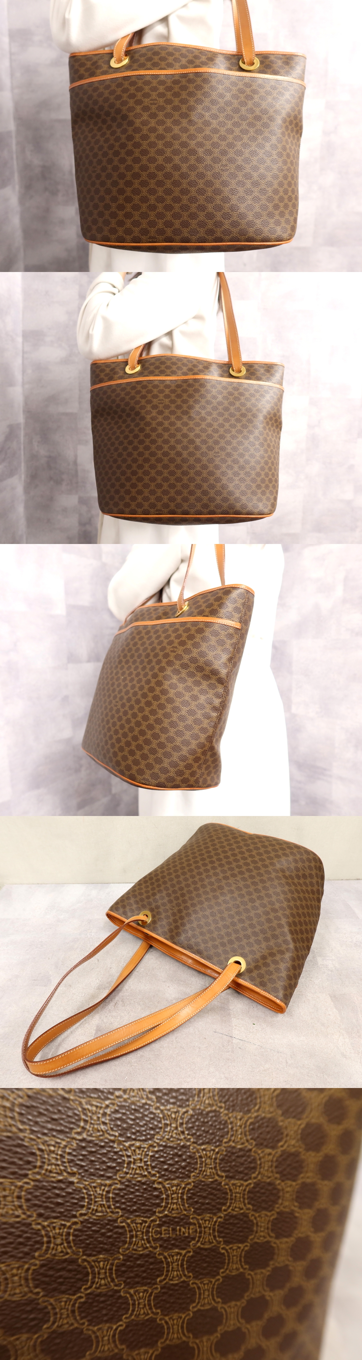 ●超美品●CELINE セリーヌ●マカダム●PVC カーフ レザー 本革●トート バッグ●ブラウン系●ゴールド金具●肩掛け●A4 かばん●Js64386 收藏