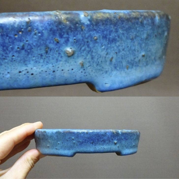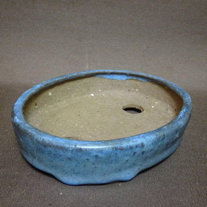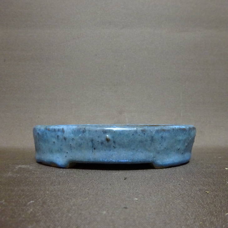 【中古】盆栽鉢 司峰 小型 長辺 約 13.2cm 楕円鉢 釉薬 現品 中古鉢 收藏