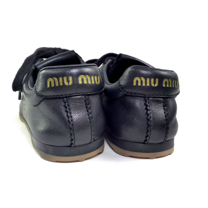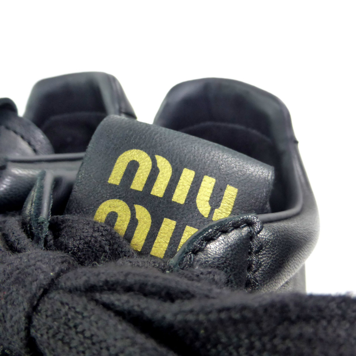 ミュウミュウ (MIUMIU)プリューム ナッパレザー レースアップ スニーカー 5E114E 靴 シューズ #36 ブラック(新品) 收藏