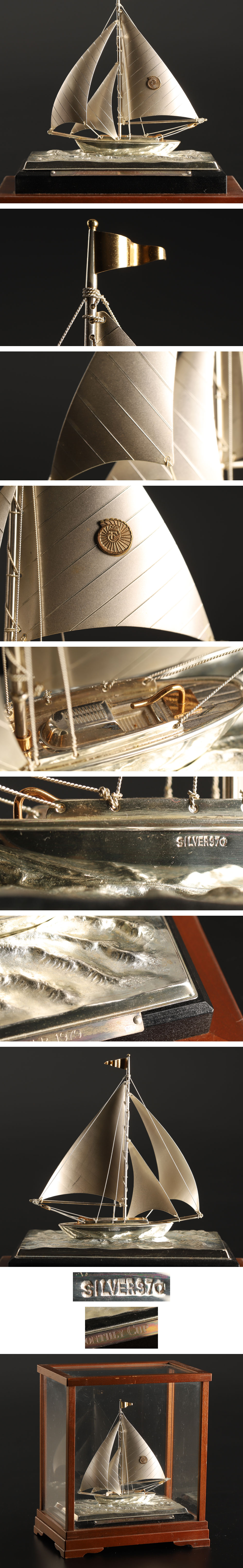 【流】SILVER970 銀製 船置物 船重量51g ケース付 HD993 收藏