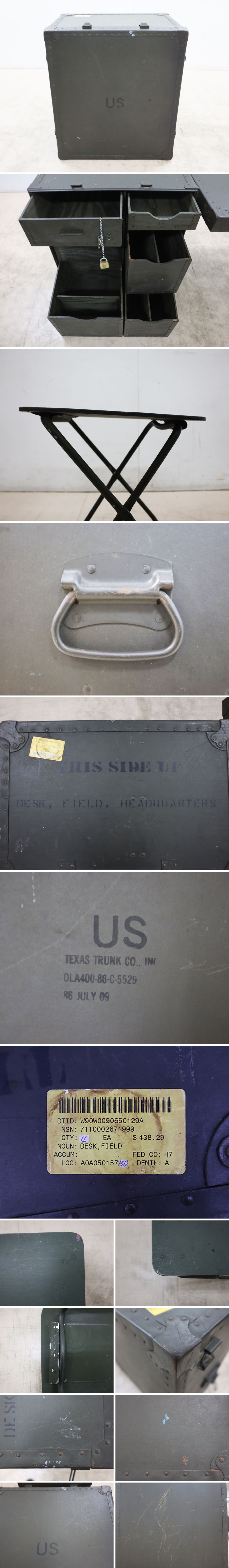 ◆希少◆ US.ARMY ヴィンテージ WW2デザイン フィールドデスク トランク型チェスト ミリタリー 折りたたみチェア付 1960-80s 收藏
