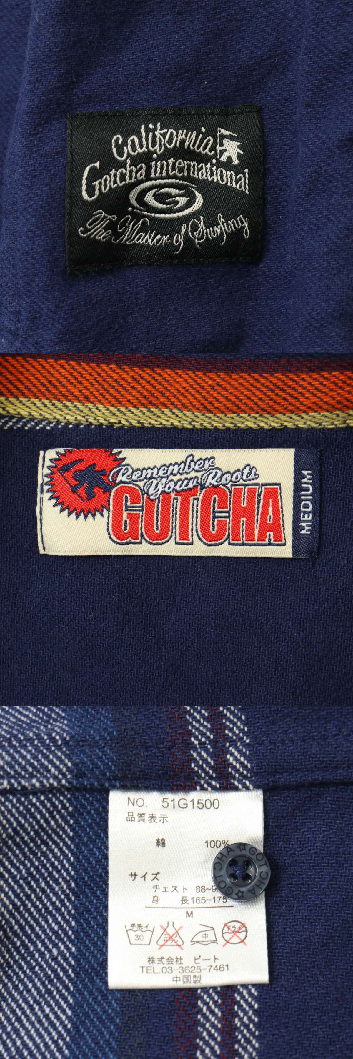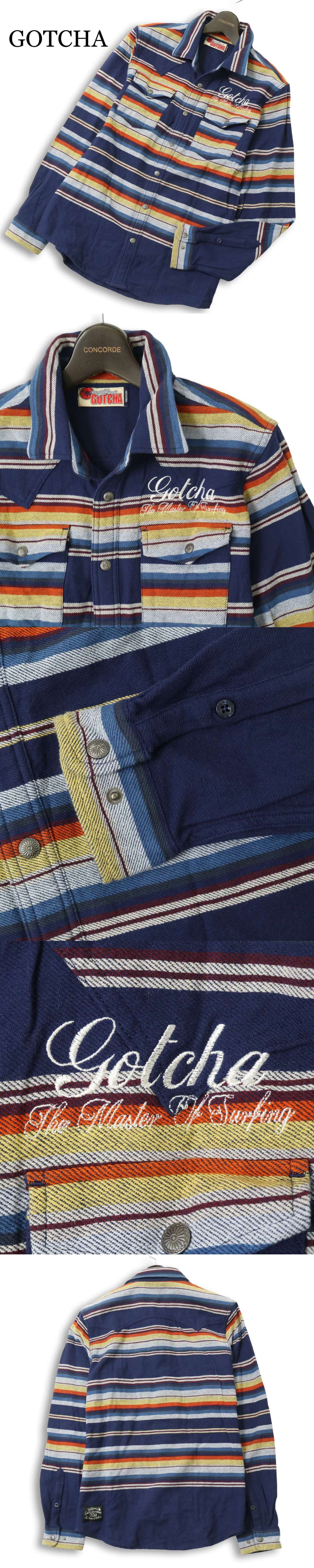 GOTCHA ガッチャ 通年 ロゴ刺繍★ 長袖 マルチカラーボーダー ネイティブ柄 ウエスタン シャツ Sz.M メンズ サーフ ブルー 收藏