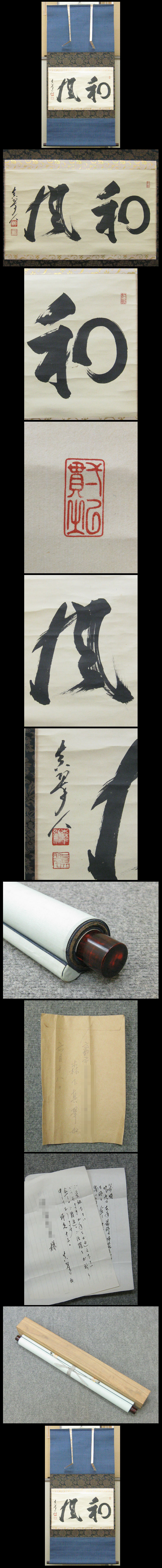 【心庵】掛軸 森下真翠 皇風煎茶禮式家元 紙本「和風」/肉筆 付箱 真作 手紙付 B720 收藏