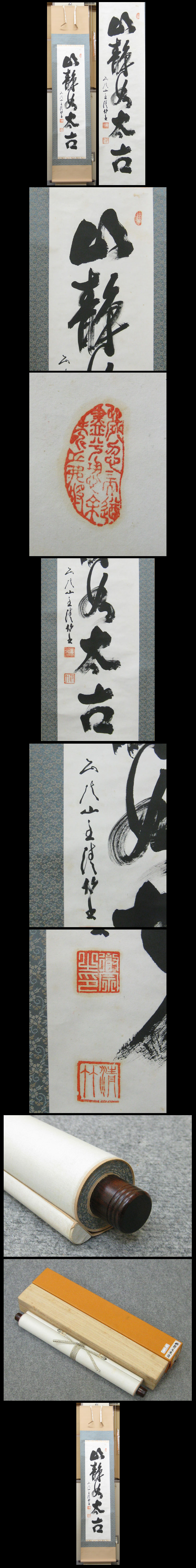 【心庵】掛軸 神月徹宗 妙心寺派16代管長 紙本「山静如太古」一行書/肉筆 付箱 真作 B542 收藏