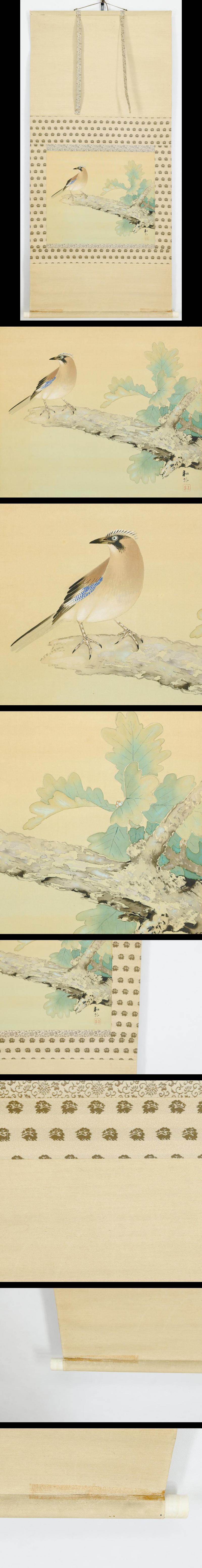 【真作】【WISH】五島耕畝「樫鳥」日本画 掛軸 絹本 共箱 ◆静寂に映える樫鳥の姿 〇寛畝系統継承花鳥画名手 師:荒木寛畝 #26010081 收藏
