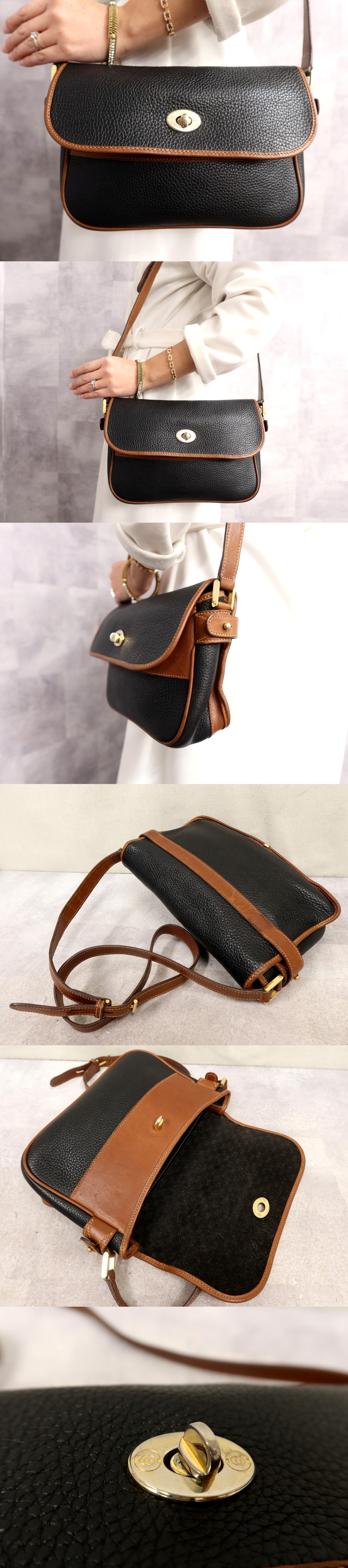●超美品●GUCCI オールド グッチ●カーフ レザー 本革●ショルダー バッグ●黒 ブラウン●ゴールド金具●斜め掛け●イタリア製●Js65166 收藏