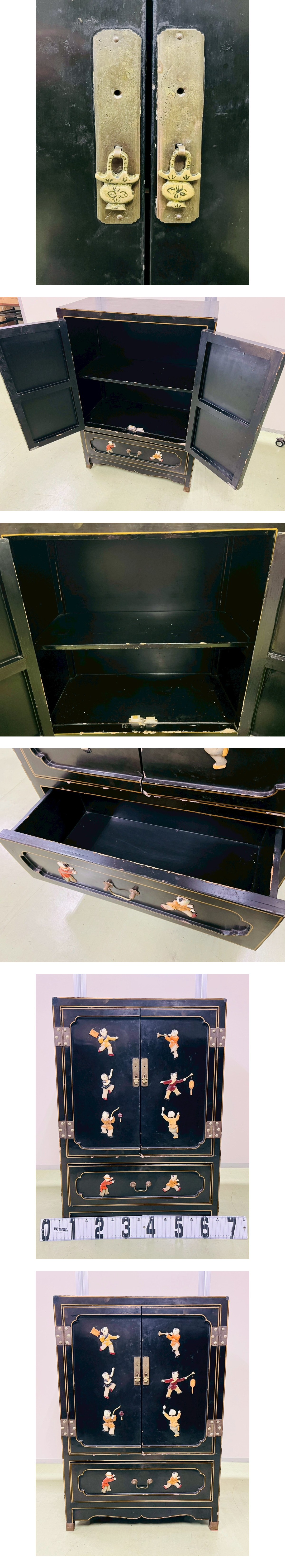 希少 中国美術 時代 黒漆塗 百宝嵌? 飾棚 唐子遊図 石彫 抽斗 飾り棚 キャビネット 骨董 古美術 アンティーク 豪華 古玩 伝統工芸品① 收藏