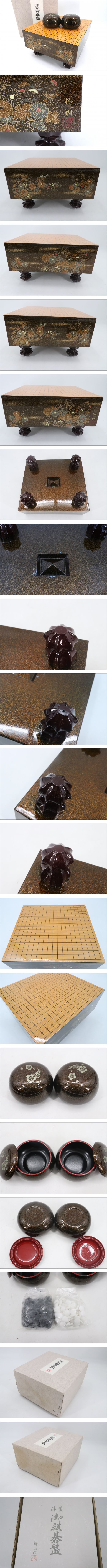 【ト長】漆芸碁盤 柳山作 御殿碁盤 秋草 ミニ碁盤 ミニチュア へそあり 足つき 囲碁 碁石 箱付き IC599IOS66 收藏