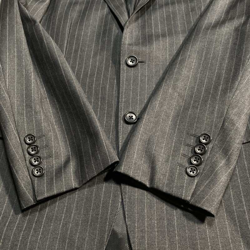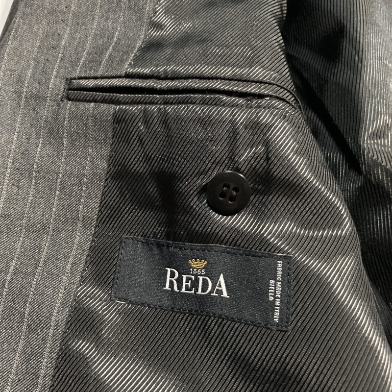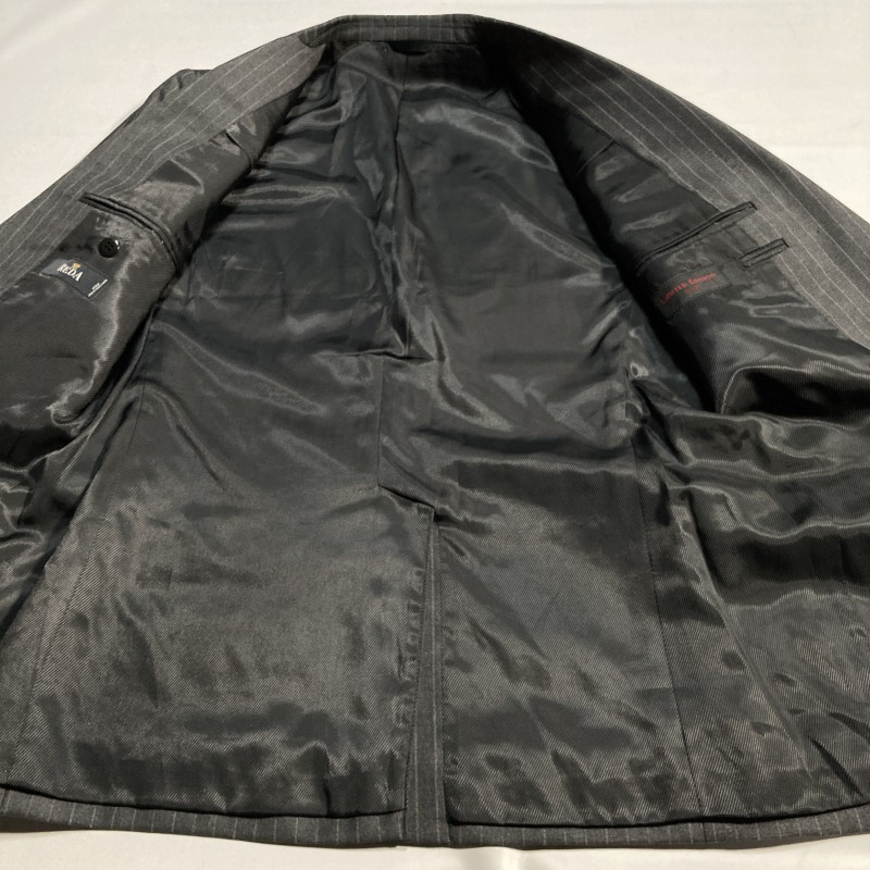 A.A.R★高級イタリアREDA生地★ストライプ セットアップ2Bスーツ テーラードジャケット&パンツ 総裏 グレー メンズS~M位 アール レナウン 收藏
