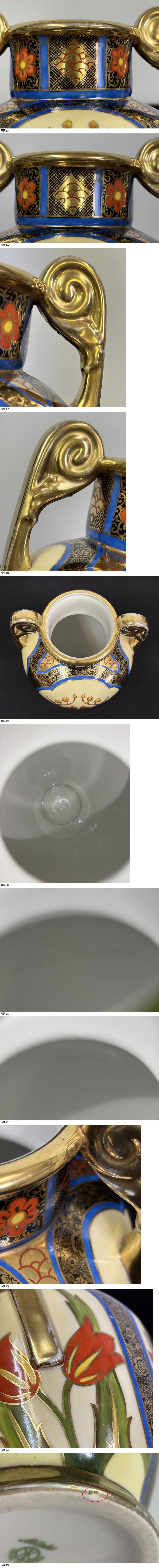 M1703/希少 Noritake オールドノリタケ 花瓶 マルキ印 英国登録/ハンドペイント 1906-1925 耳付 フラワーベース 金彩 更紗 アンティーク 收藏