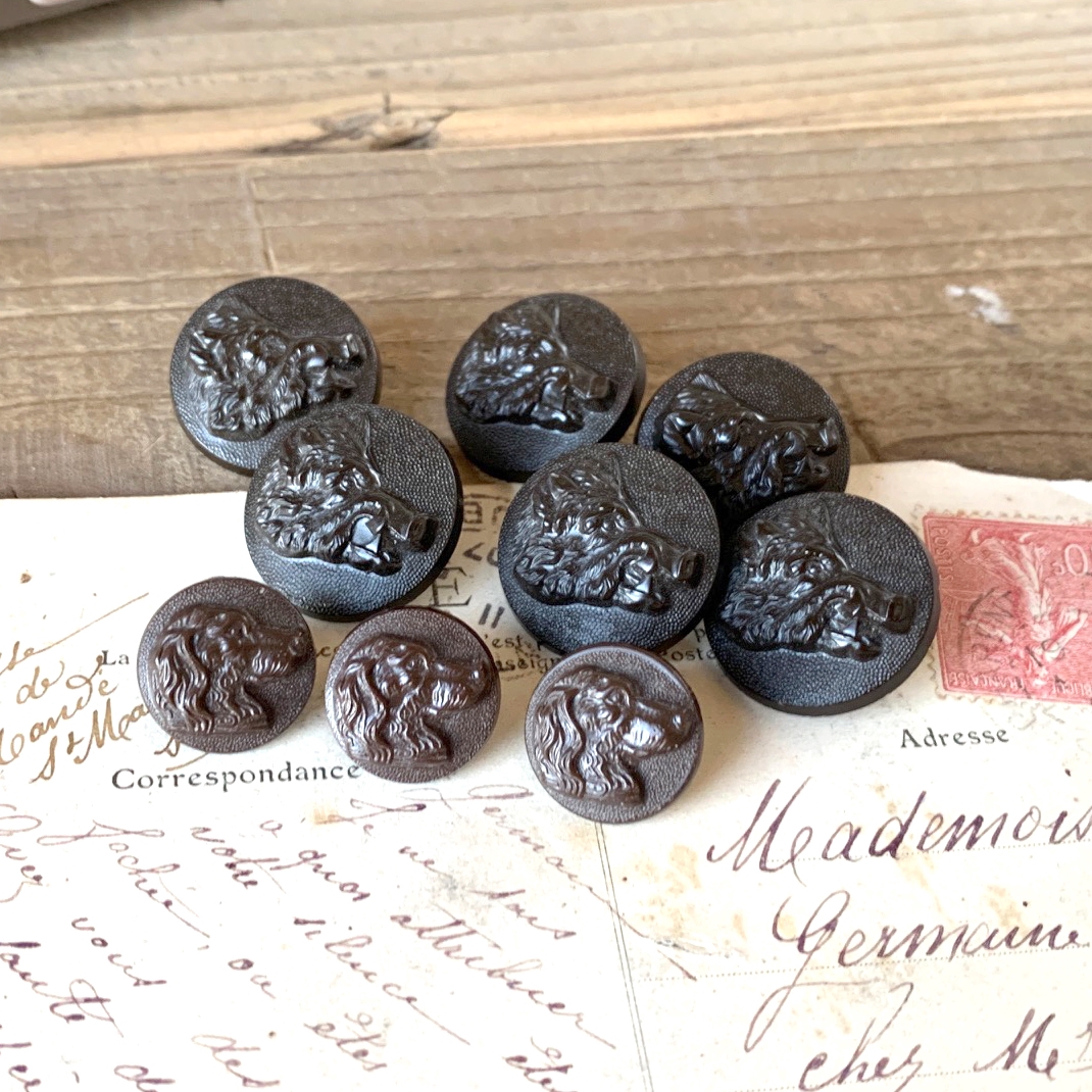 フランス 1900s 猟犬 フェイス 顔 ベイクライト ハンティング ジャケット ボタン 古着 狩猟 ミリタリー ヴィンテージ アンティーク 3 收藏