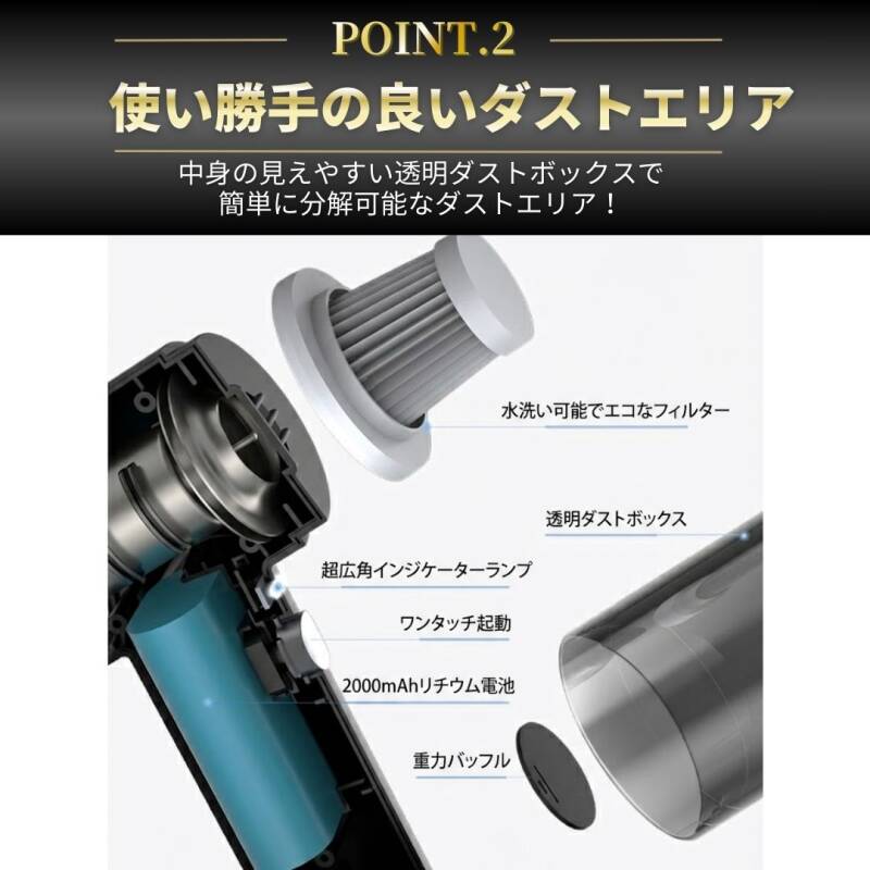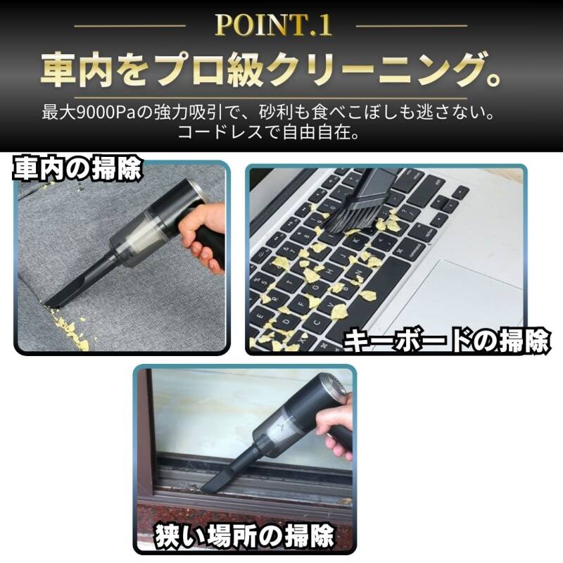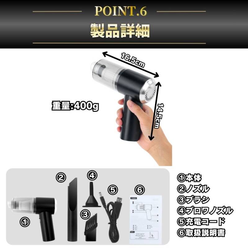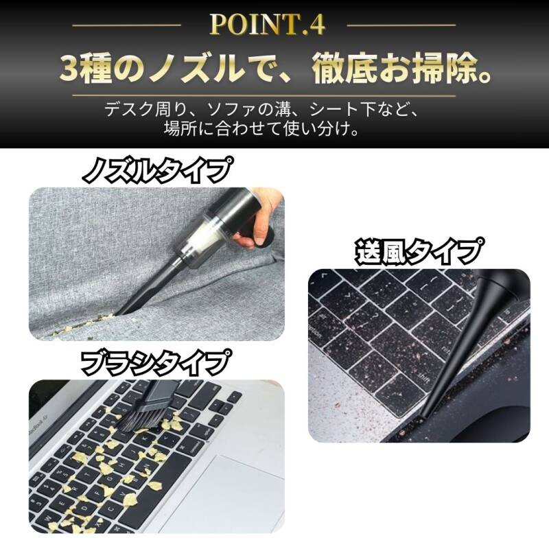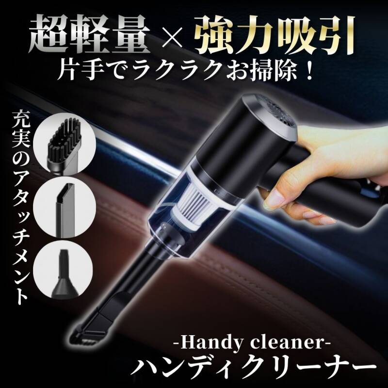ハンディクリーナー 車用 掃除機 コードレス USB充電式 強力吸引 軽量 コンパクト 送風対応 隙間ノズル付 デスク 小型 ポータブル ブラック 收藏