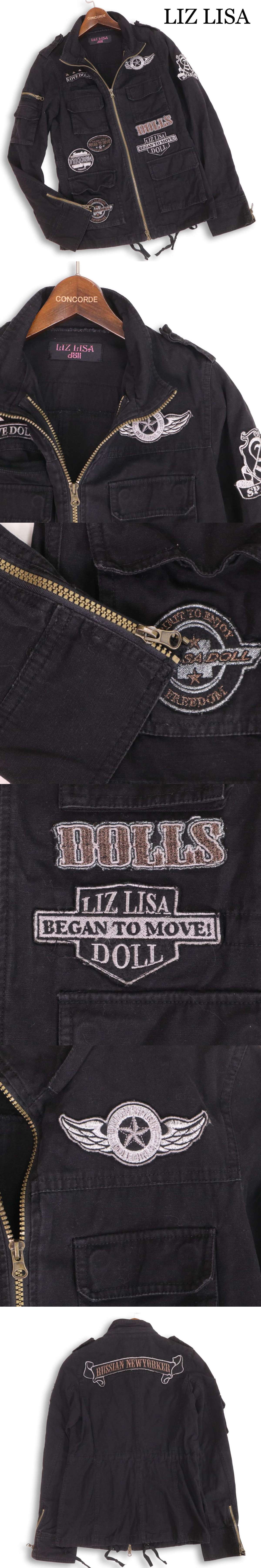 Y2K 00s 平成ギャル★ LIZLISA DOLL リズリサ ドール 通年★ ワッペン 刺繍 ミリタリー ジャケット Sz.F レディース 黒 收藏