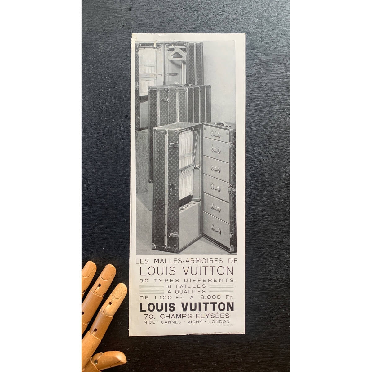 PayPayフリマからご覧のお客様 説明欄に追加画像を掲載している商品がございます PayPayフリマからではご覧いただけません の『商品詳細を見る』から追加画像をご確認ください 表示価格は、1枚の価格です フランス 1920s LOUIS VUITTON ルイヴィトン 「La Malles Armoire」 旅行用のワードローブや書棚の写真が掲載されています 1929年に出稿された広告です コピーではなく当時のものになります 軽く丸めての発送となります 1枚の出品です 額縁サイズ:34cm×13cm 他にも多数出品していますので是非ご覧ください ホームページもございますので、よろしければご覧ください -------------------------------------------------------------------------------------------------- ・古物と十分ご理解の上落札をお願いします ・撮影に使われているその他小物はお取引に含まれません ・新規の方は入札前に質問欄からお問い合わせ下さい ・落札後のキャンセル、返品(クレーム)はご遠慮ください ・割引販売、梱包方法の指定はご遠慮ください ・画面と実物の色味の違い、サイズの若干誤差などが生じる場合がございます ・状態を全て掲載、記載する事は難しく、気になる点は事前に必ずご質問下さい ※状態とは( 痕、傷、汚れ、シミ、ホツレ、錆、ひび割れ等) -------------------------------------------------------------------------------------------------- |