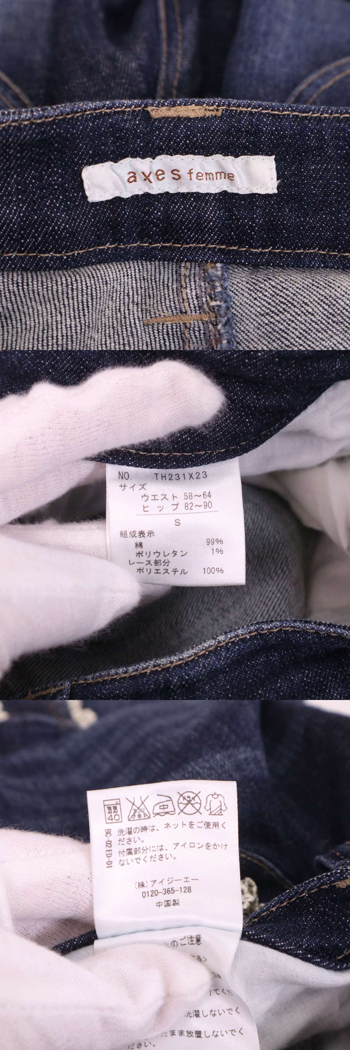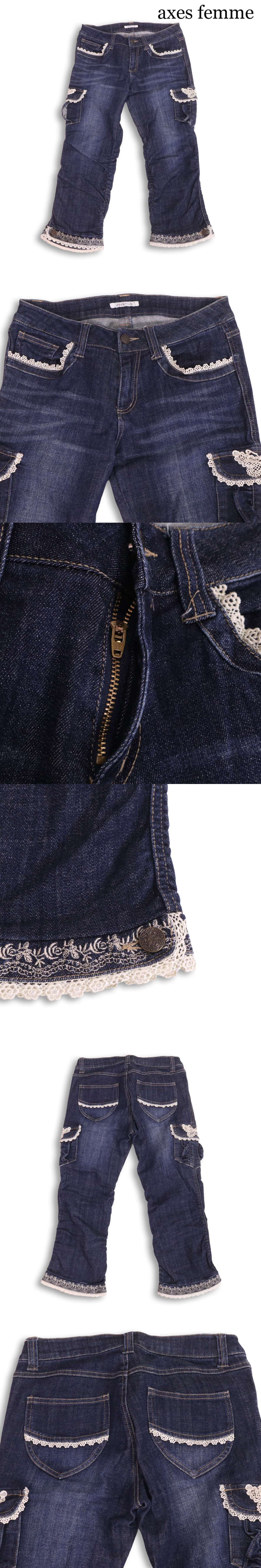 axes femme アクシーズファム 通年 レース 刺繍♪ ストレッチ アンクル デニム カーゴ パンツ ジーンズ Sz.S レディース 收藏