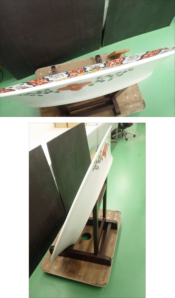 D591 直接引き取り限定(大阪) 有田焼 舞右衛門 作 極上染錦 金彩色絵花唐草 元禄美人御所車図 飾皿/大皿/立札 直径103cm/三尺皿 收藏