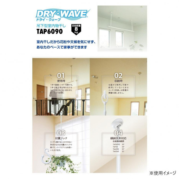 DRY・WAVE(ドライ・ウェーブ) 吊下型室内物干金物 (W/ホワイト) TAP6090(W) 收藏