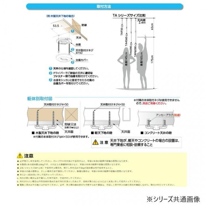 | 付属品 | 天井取付けネジ 収納用フック 収納用フック取付けネジ S字フック |