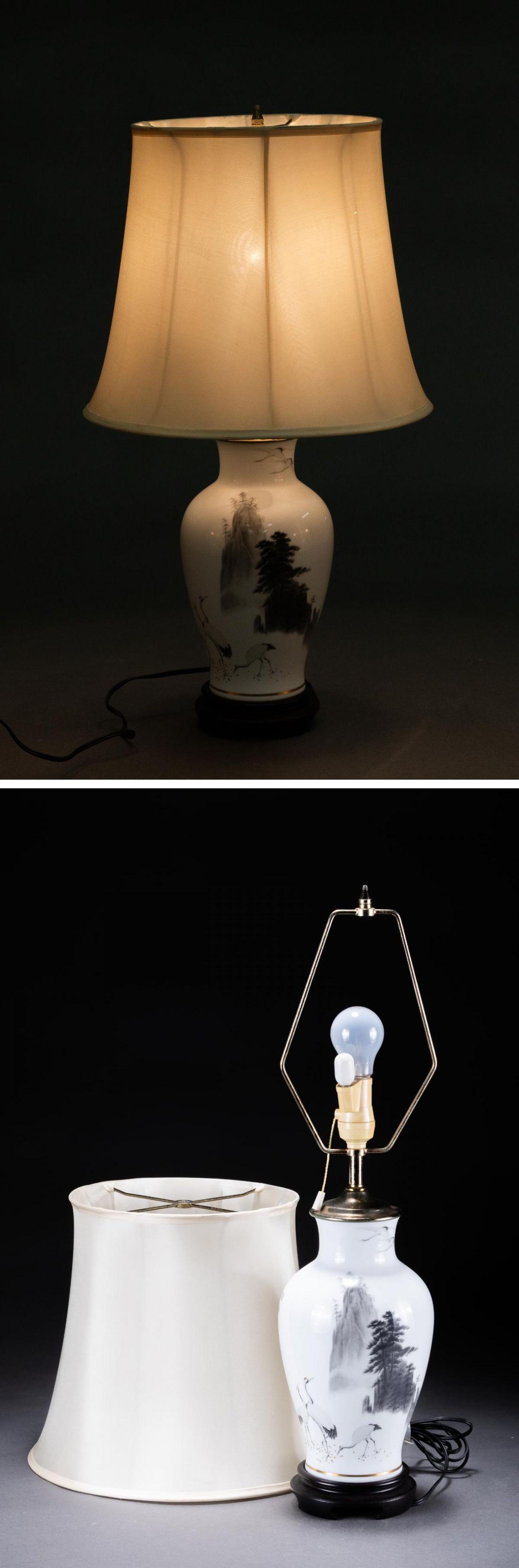 【華】某収集家放出品 時代物 有田焼 仙鶴紋ランプ 案頭置物 古美術 骨董品A25090388-QR