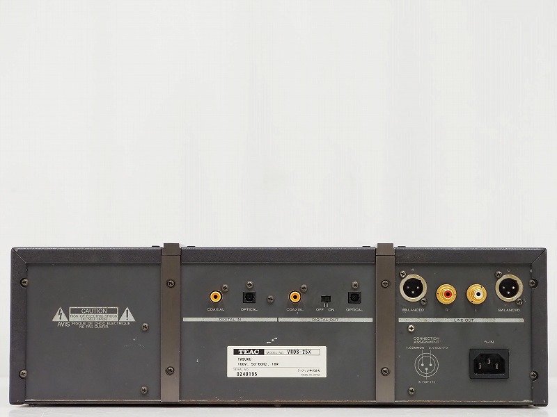 ■メーカー : TEAC ■型番 : VRDS-25x ■外径寸法 : W442×H145×D344mm ■重量 : 16.5kg 【商品の状態 当店での確認内容】 音声出力は確認できておりますが、デジタル入力は動作しません。また、OPTICAL入力端子にピンが折れた状態で入ったままとなります。 脚は付属しておりません。 ※上記により【難あり商品】としての出品となります。 「商品の状態」に関しましては当方主観の目安となります。外観などは中古品で個人差もありますので詳細は画像にてご判断ください。 画像にて不明な点はご質問下さい。 出品商品は画像のものですべてになります。画像に写っているもの以外は付属いたしません。 【送料 全国一律 2,080 円 沖縄、離島は別途お見積り】 ※送料がお得になるサービスです(下取りシステムのご案内です) ストア決済利用時にクレジットカードやPayPay残高/PayPayクレジットを利用の方は留意点がございますのでこちらを参照上ご利用ください。 当ストアでは商品を安全にお届け出来るよう提携運送会社と協議の上、発泡緩衝材や強度段ボールの使用等 運送会社が指定する梱包方法や資材を採用しております。 より安全にお届け出来るよう商品仕様により梱包サイズが大きくなる場合や個口数が増える事がございます。 【当ストアオークションルールを入札前に必ずご確認ください。】 【落札後の取引手順】 ・落札後は取引ナビにて、必要事項をご入力後、送信ください。 取引終了後48時間(土、日は除く)以内に入力をお願い致します。 ※ご連絡が頂けない場合は落札者様都合でのキャンセルとさせていただきます。 ・落札代金(商品代金+消費税+送料)の入金をお願い致します。 ※大型商品の場合は送料確定後の決済となる為取引ナビを入力頂き、当ストアより送料のご案内が来るまでお待ちください。(土曜、日曜、祝日の場合は翌営業日より順次ご案内いたします) ・お支払い方法はクレジットカード/PayPay残高/PayPayクレジット/PayPay銀行/ゆうちょ銀行のみです。 ※商品代金引換(代引き)のお取り扱いはしておりません。 ※領収証の発行が必要な方はご連絡ください。 ※銀行振込の際の振込手数料はご負担願います。 ・入金確認後に出荷手配を致します。 (原則入金確認後3営業日以内に発送いたしますが、大型や重量のある製品はお時間をいただく場合もございます。) ・発送は当店指定の運送会社の元払いのみでの発送となります。 ※他の運送会社、送料代引き等は致しかねます。 ※落札者様ご自身での運送会社の手配いただく事も可能ですが荷物事故の責任の所在の問題上、梱包は致しかねます。 ※店頭にお越し頂き手渡しも可能(福岡市早良区)です。ご希望の方はご落札後にご連絡下さい。 ・大型/重量物商品の送料につきましては商品の特性上、荷降ろし状況等により送料が大きく前後し運送業者に別途見積りが必要な為、早めのお問い合わせにてお見積り上、入札をお願い致します。 【初期不良の保証について】 ・商品到着後の初期動作不良、また配送中の事故による破損、不具合が有る場合は、商品発送後10日以内に当ストアまでご連絡ください。当ストアでは修理での対応を優先させて頂きますが、修理不可の場合は全額返金させて頂きます。 (商品代金+消費税+送料のお支払い頂いた金額となります) 【初期不良の保証の対象外について】 次の場合は保証の対象外となりますのご留意ください ・ジャンク商品、現状商品、難あり商品での出品商品。 ※難あり商品に関しましては動作確認時に一部動作不良が確認された商品になり、記載している動作確認以外にも、動作不良がある可能性もございます。こちらに関しましても保証対象外となりますことをご理解ください。 ・年代物のオーディオなどで、当店にてわからない範囲で部品が交換されている場合 ・楽器類の特殊機材(マイクロスコープ等)での確認までは行っておりません。気になる方は事前にご質問いただくか、入札をお控えください。 ※初期不良に関しましては【商品の状態】に記載のもの、またそれによって起因する動作不良は対象外です。 ※商品発送後10日を過ぎてのご連絡は対応が出来ませんので、商品が到着しましたらお早めに確認をお願い致します。 【メーカー保証の加入・継承】 ・未使用品、展示品やメーカー保証期間が残っている商品に関しまして、メーカー保証の加入、継承が必要な方は、落札後取引ナビ内にて当ストアにお知らせください。商品発送までにご連絡いただけない場合、メーカー保証の手続きを承れない場合があります。 【評価について】 ・評価不要の場合、必ず取引ナビの「要望欄」にてお知らせください。それ以外でご連絡をいただいた場合、対応できない可能性がございます。一度行った評価はシステム上取り消しが行えませんのでご了承ください。 【入札削除・キャンセルについて】 ・入札後はトラブル防止の為いかなる事情がおきましても入札を削除等は致しておりません。 ご検討の上入札をお願い致