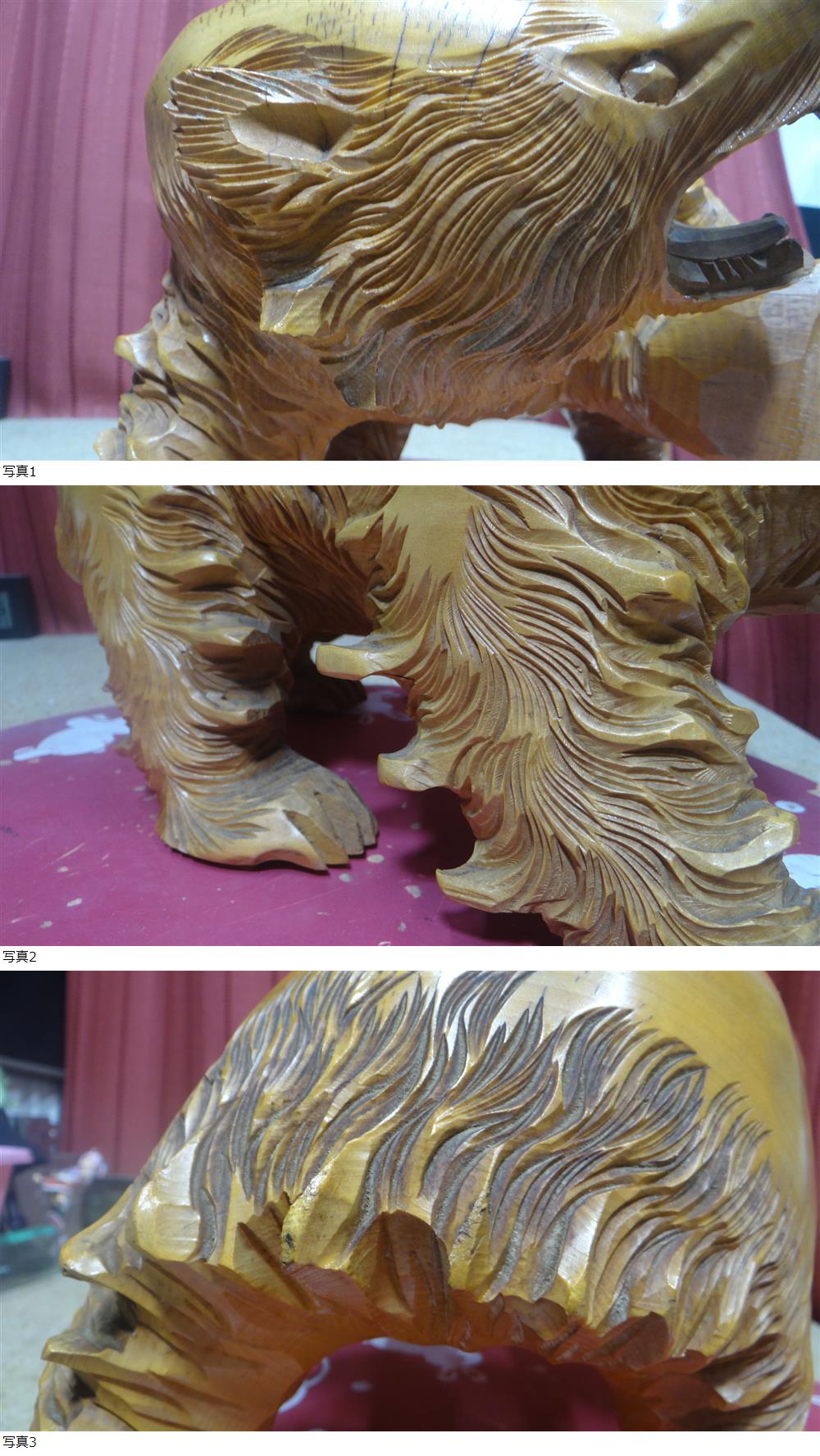 VT5244 作家もの 熊の木彫り 無垢白木、威嚇の前足上げ、爪 、一点もの、置物、インテリア、オブジェ、伝統工芸品 現状品 收藏