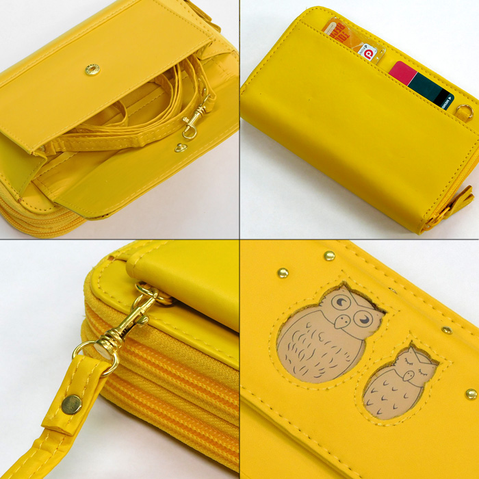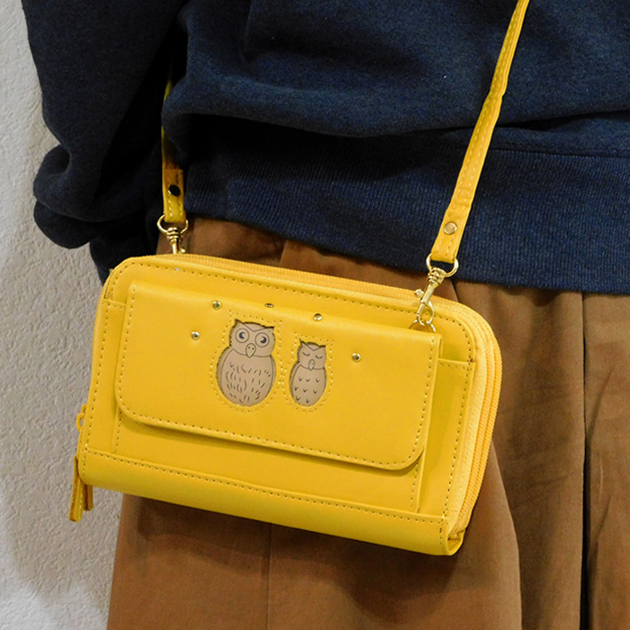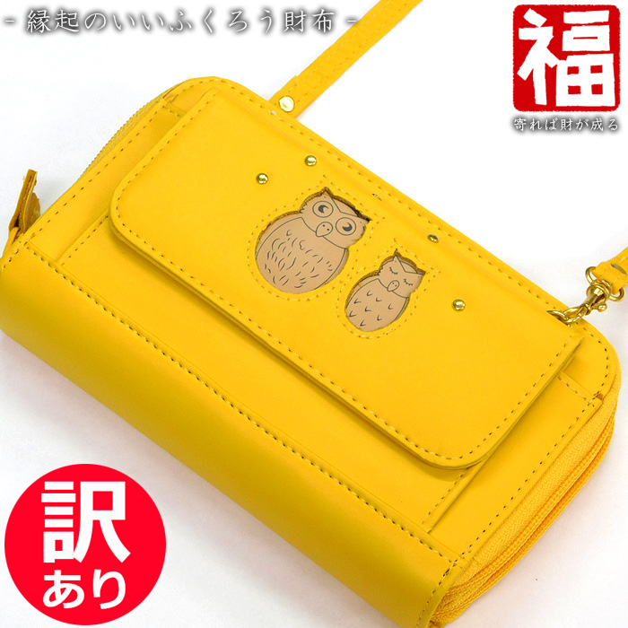 訳あり特価 ふくろう お財布ショルダー レディース キッズ 財布 長財布 斜め掛け財布 縁起 幸運 金運アップ 縁起財布 イエロー 收藏