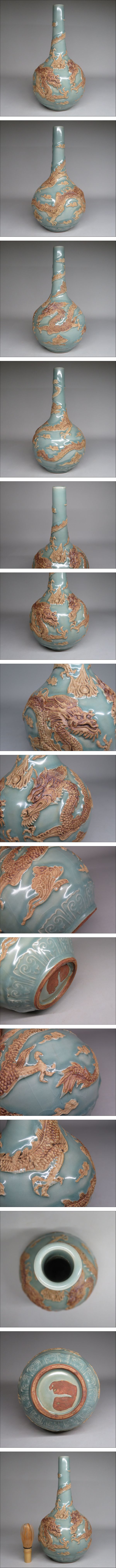| 【東】清時代 青釉刻双龍文天球瓶 中国美術/古美術・骨董品 | ||