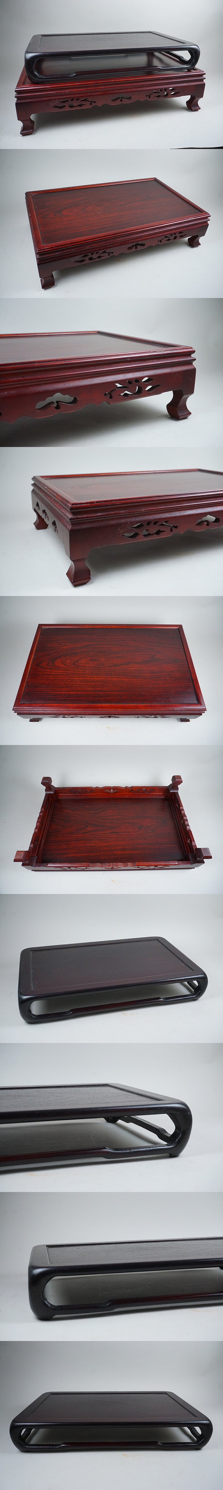 | D-346■紫檀猫足 屋久杉 平花台 三点 | ||