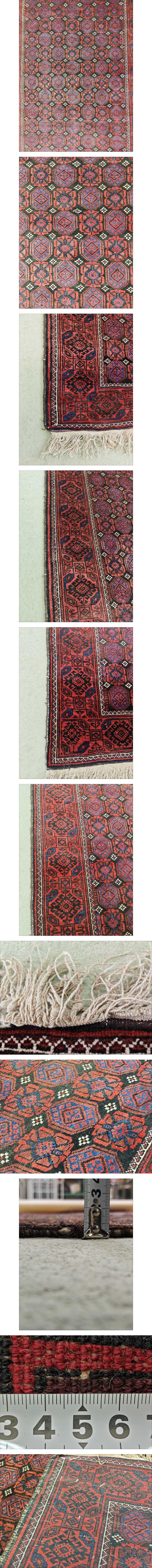 J377◆真紅の衝撃◆1970年代【未使用保管品】アフガニスタン絨毯 ウール 手織 128-228cm セミアンティーク ヴィンテージ ペルシャ絨毯 收藏