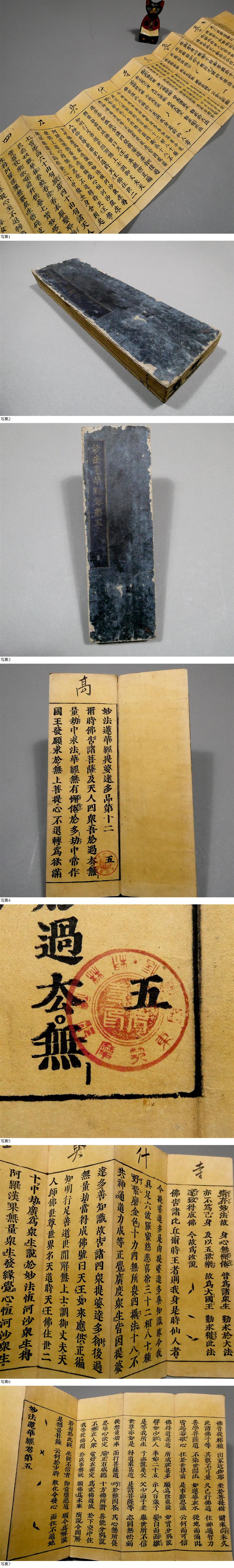 江戸時代 経本◆「妙法蓮華経巻第五」◆表紙に蓮の花の模様 金字の題箋◆信濃国東筑摩郡 長久寺の蔵印■仏教 古刹 経典 墨摺 和本 古文書 7 收藏
