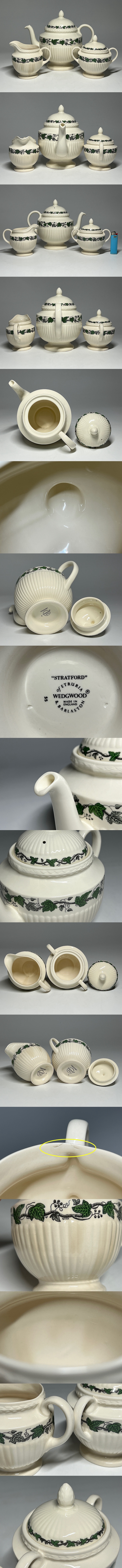 【瑞】ウェッジウッドWEDGWOOD ストラトフォード ティーポット + シュガーポットとクリーマー *(クリーマーの縁にヒビ有) 收藏
