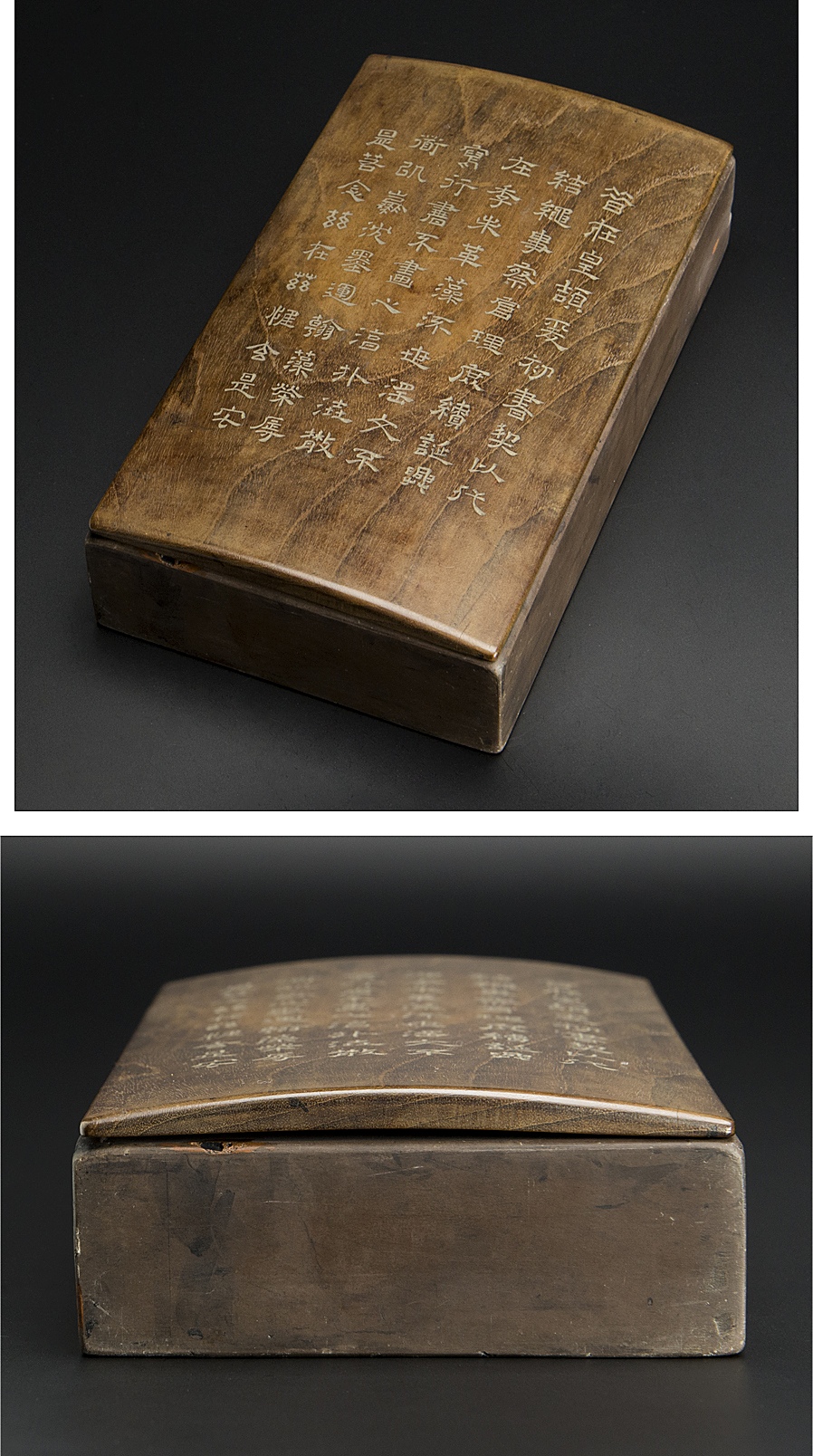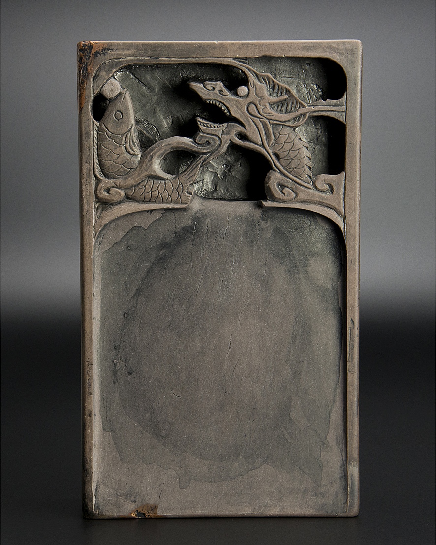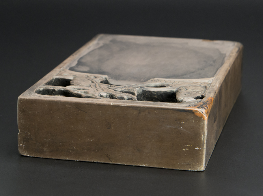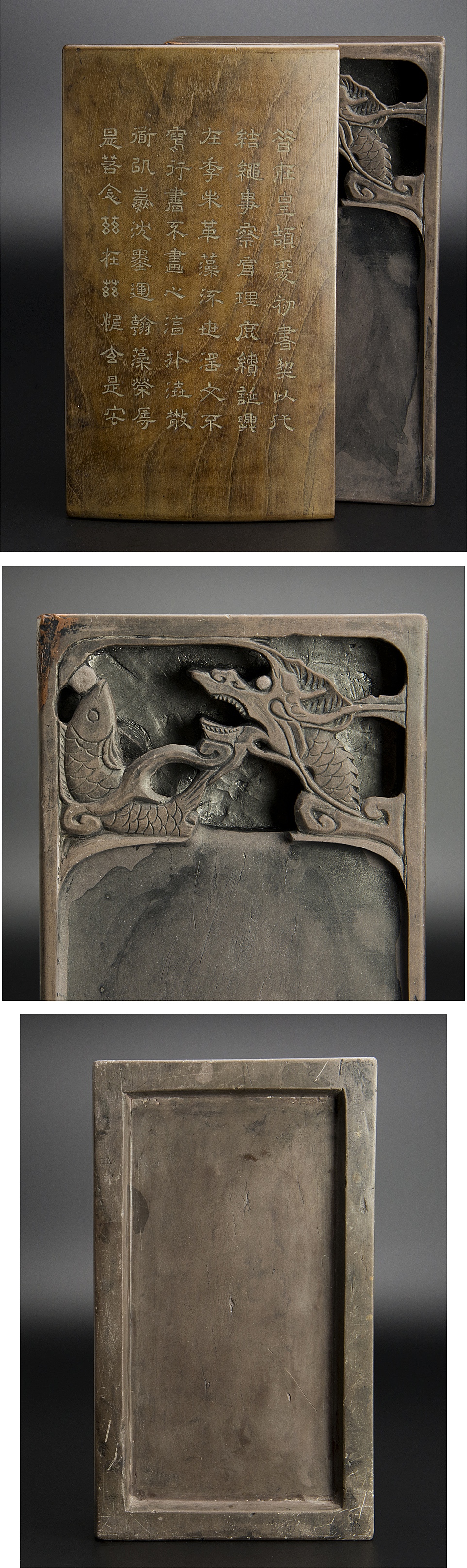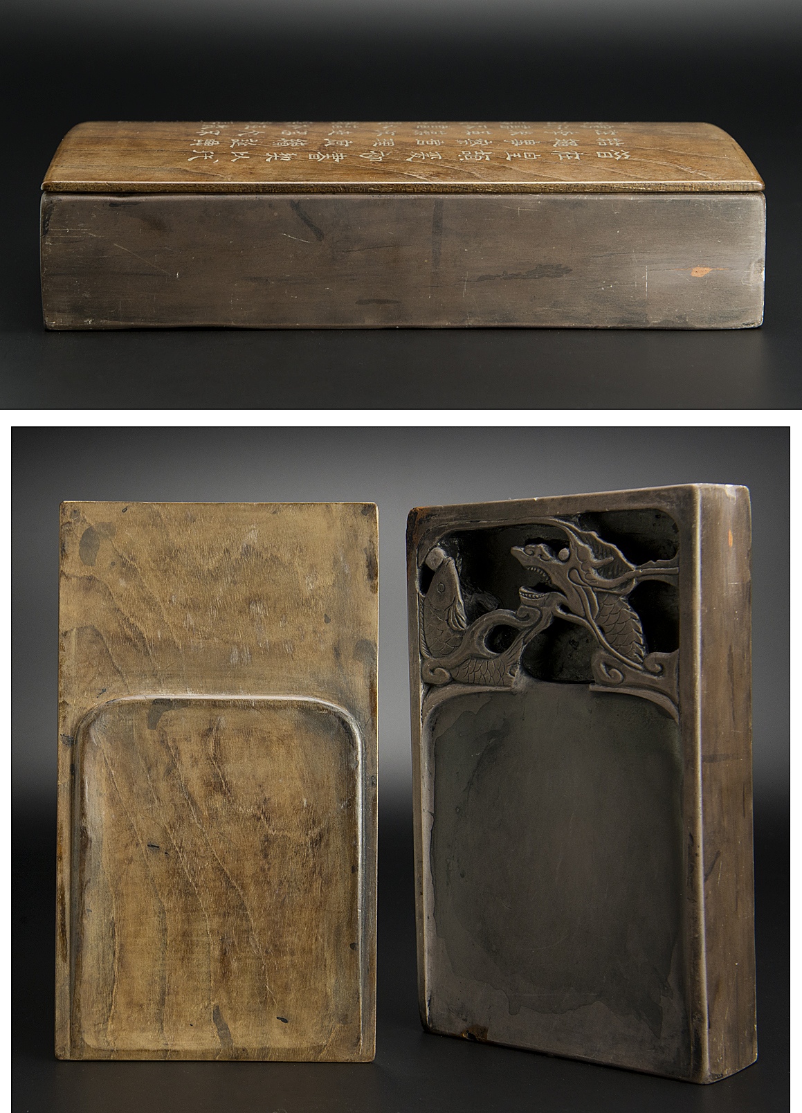 明/清 端石龍紋硯 共木蓋 中国 古美術 收藏