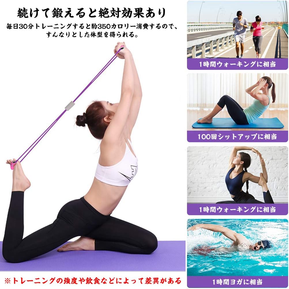 肩こりや疲労感を解す為に体幹ストレッチをする①片足の膝を太腿と脹脛を90度になるように曲げて、もう片足をまっすぐ伸ばして、体のバランスを保つ; ②両手でハンドルをしっかりと持って両肩を意識して呼吸しながらトレーニングすると、肩こりや筋肉疲れを解消することができる; | 細長い足を作り出す為に余計な脂肪を燃焼させる①マットや床に座って、片脚と片手で体を倒れないように支える; ②チューブを足にかけて、片手で引っ張っていて、呼吸しながら上げた状態でしばらく静止状態を保持してからゆっくり下げるように往復上下を行う; | 寸胴ウェストと太鼓腹をすらりとする①四つん這いのように片側の手と足で倒れないように体を支える; ②チューブを足にかけて、手で反対側を持ち、腰の筋肉を意識して、往復曲げ伸ばしを行う;※おすすめの姿勢ができないかと思われる方はYoutubeから自分にあう方法を見つけることができます。 |