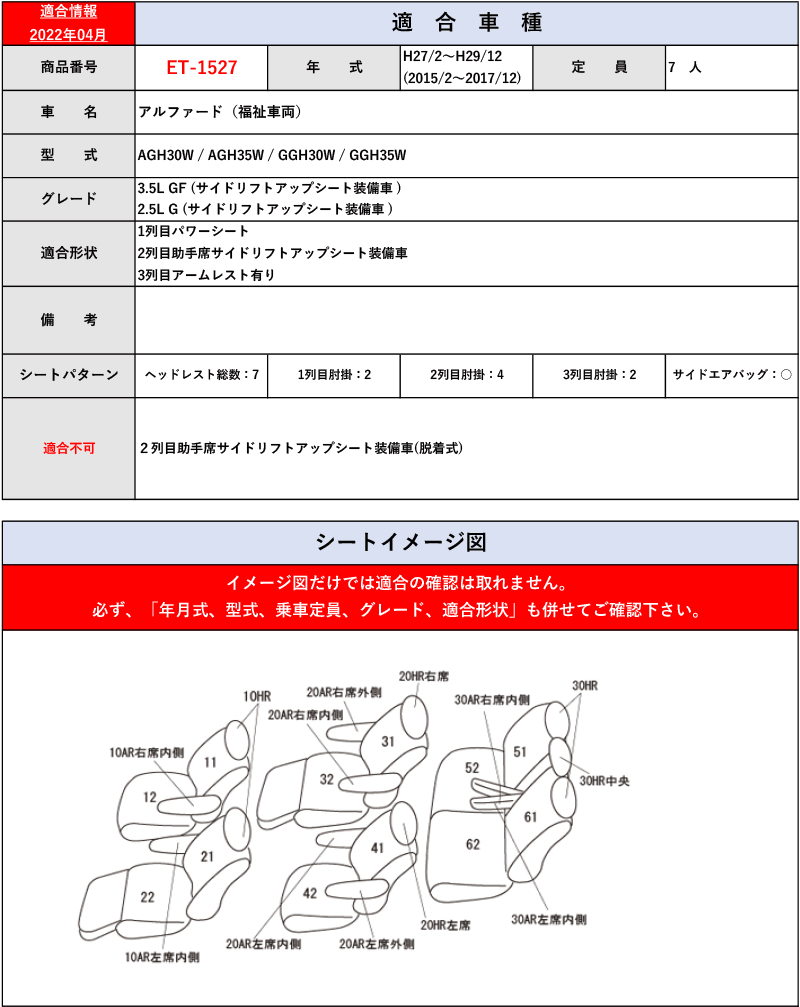 [Clazzio]30系 アルファード_7人_1列目パワーシート車_福祉車両(H27/2ーH29/12)用シートカバー[クラッツィオ プライム][ET-1527] 收藏