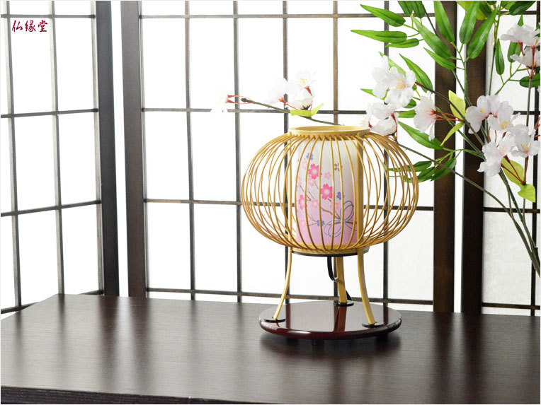 お盆提灯【モダン盆提灯:桜結び 卓上・天然竹材・蛍回転筒付・本色】岐阜提灯 インテリア提灯 お盆 お彼岸 盆棚 送料無料 收藏