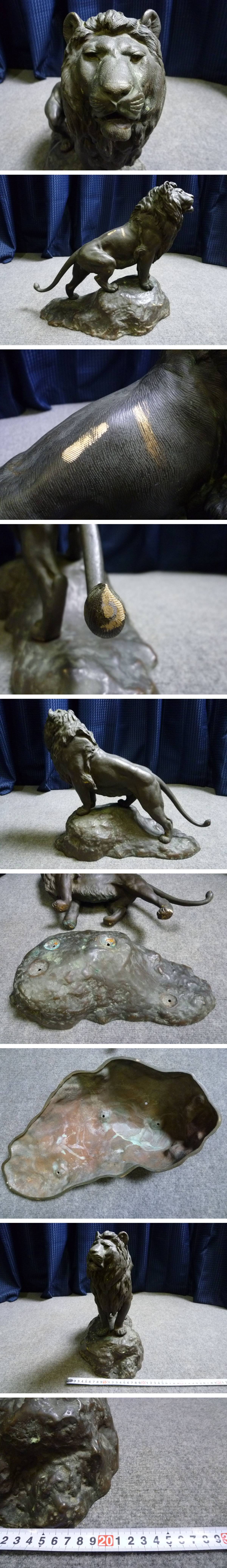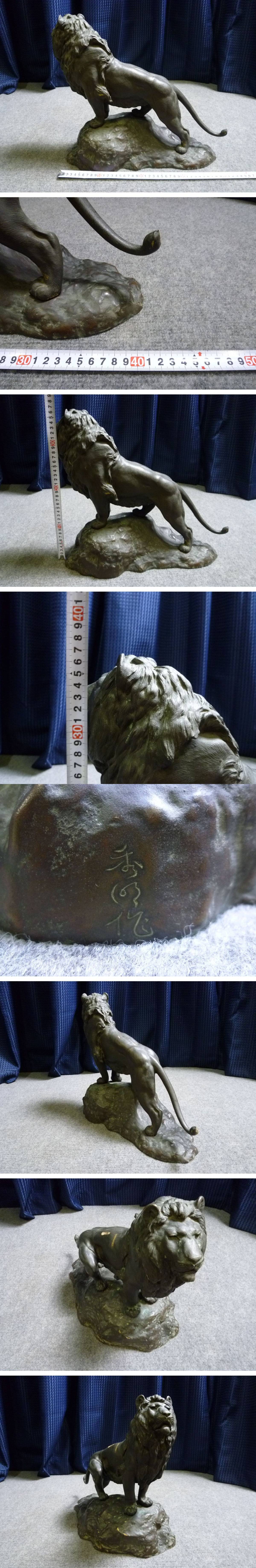 ▲ 彫刻家 秀明作 ブロンズ 岩上 ライオン 像 置物 獅子 ▲の出品となります。
