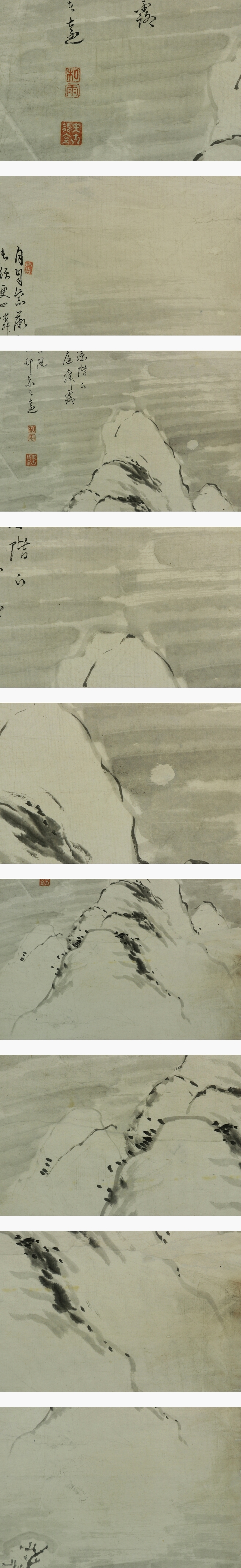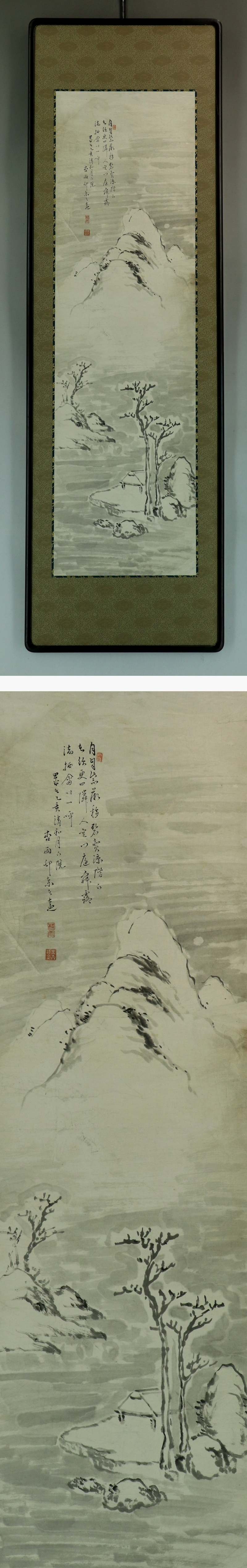 帆足杏雨 ほあし-きょうう(1810-1884) 江戸後期-明治時代の画家。文化7年4月15日生まれ。 家は豊後(大分県)戸次の大庄屋。 田能村竹田,浦上春琴に師事し,元・明(中国)の文人画にも学ぶ。 帆足万里,広瀬淡窓,頼山陽らと交わる。 明治17年6月9日死去。75歳。幼名は熊太郎,庸平。名は遠。字は致大。別号に聴秋,半農。 本紙は、染み、虫食い痕、破れ痕があります。 表装は、額部に傷、汚れ、裏面に汚れ、染み、破れがあります。 【サイズ】 作品 横約34cm×縦約117.5cm 表装 横約47.5cm×縦約154cm |