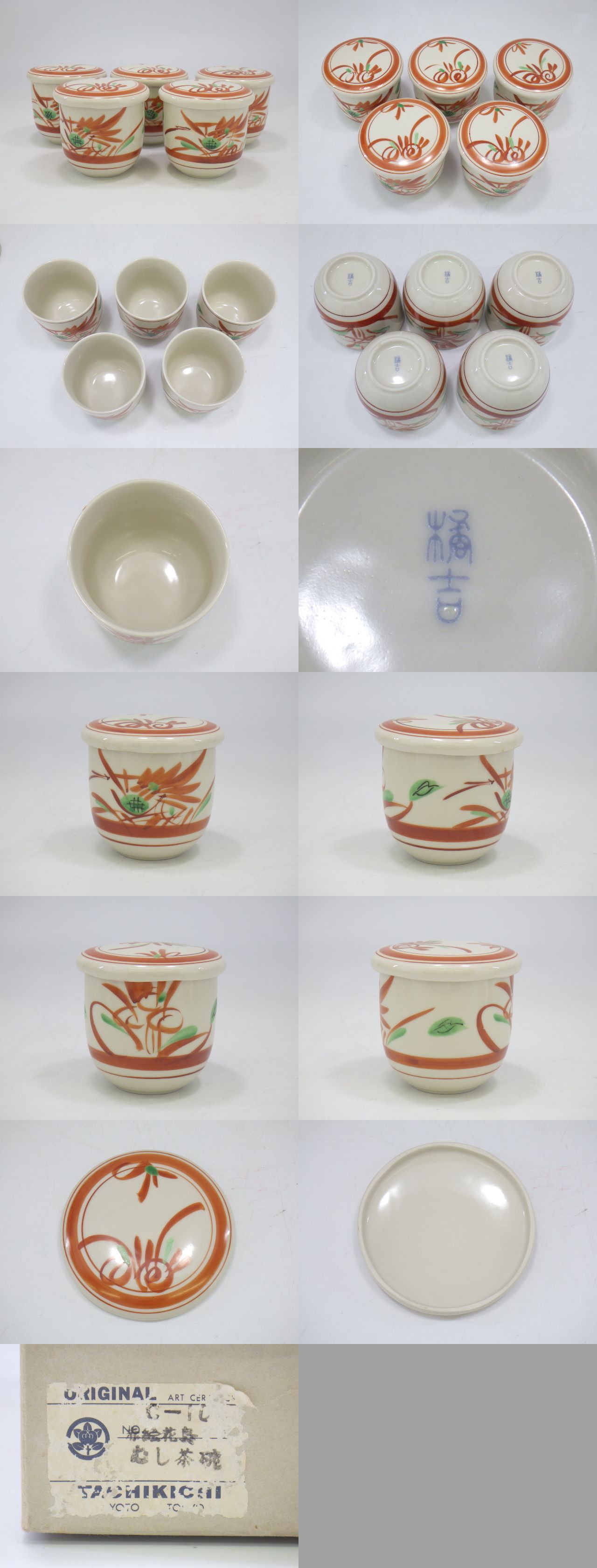 h5A053Z- たち吉 橘吉 赤絵 むし茶碗 5客/有田焼 祥楽 小鉢5客/HOYA CHINA ミート皿 4客 計3点セット 收藏
