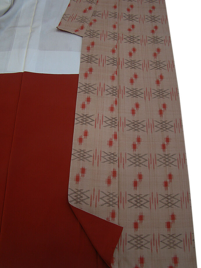 ちょっと一言 | 洒落帯で粋に〆たいぼそや節も味わい深い真綿紬地の温もり溢れる紬着尺です。 帯や小物次第で様々なコーディネートをお愉しみ頂ける事と思います。 |