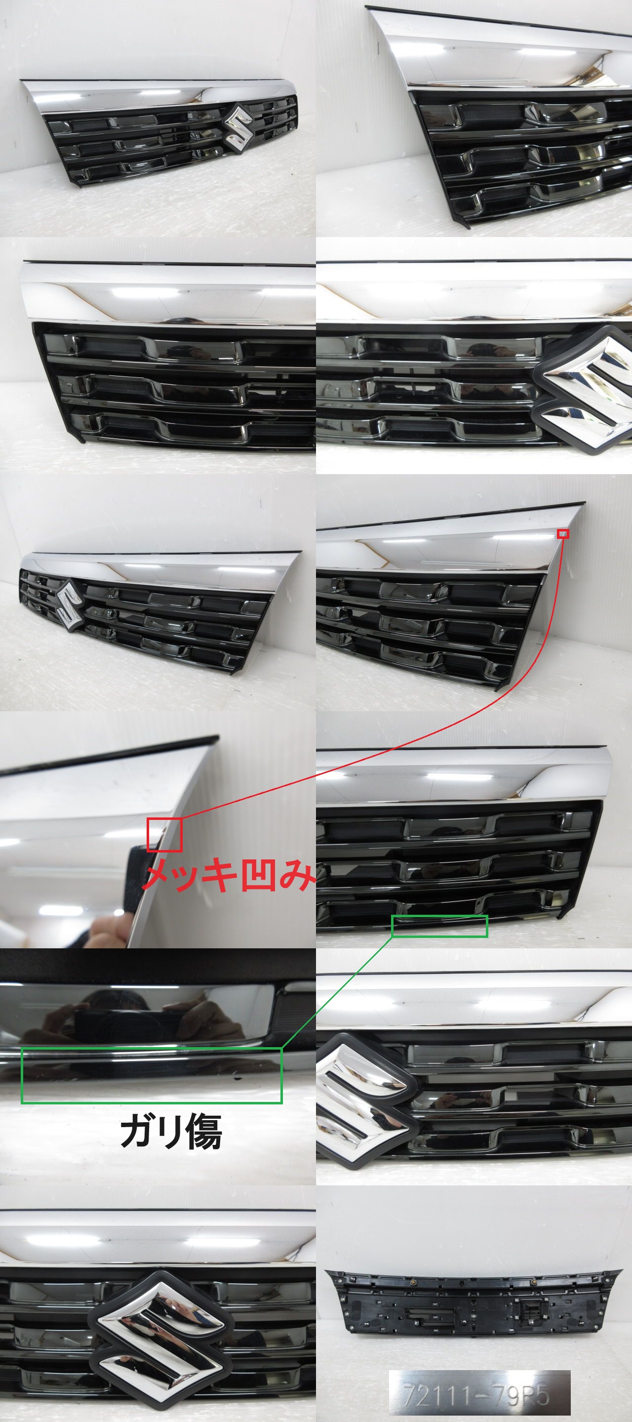即決あり 取付部破損無し スペーシアカスタム MK53S 純正 フロント メッキ グリル 72111-79R5 (B038367) 收藏