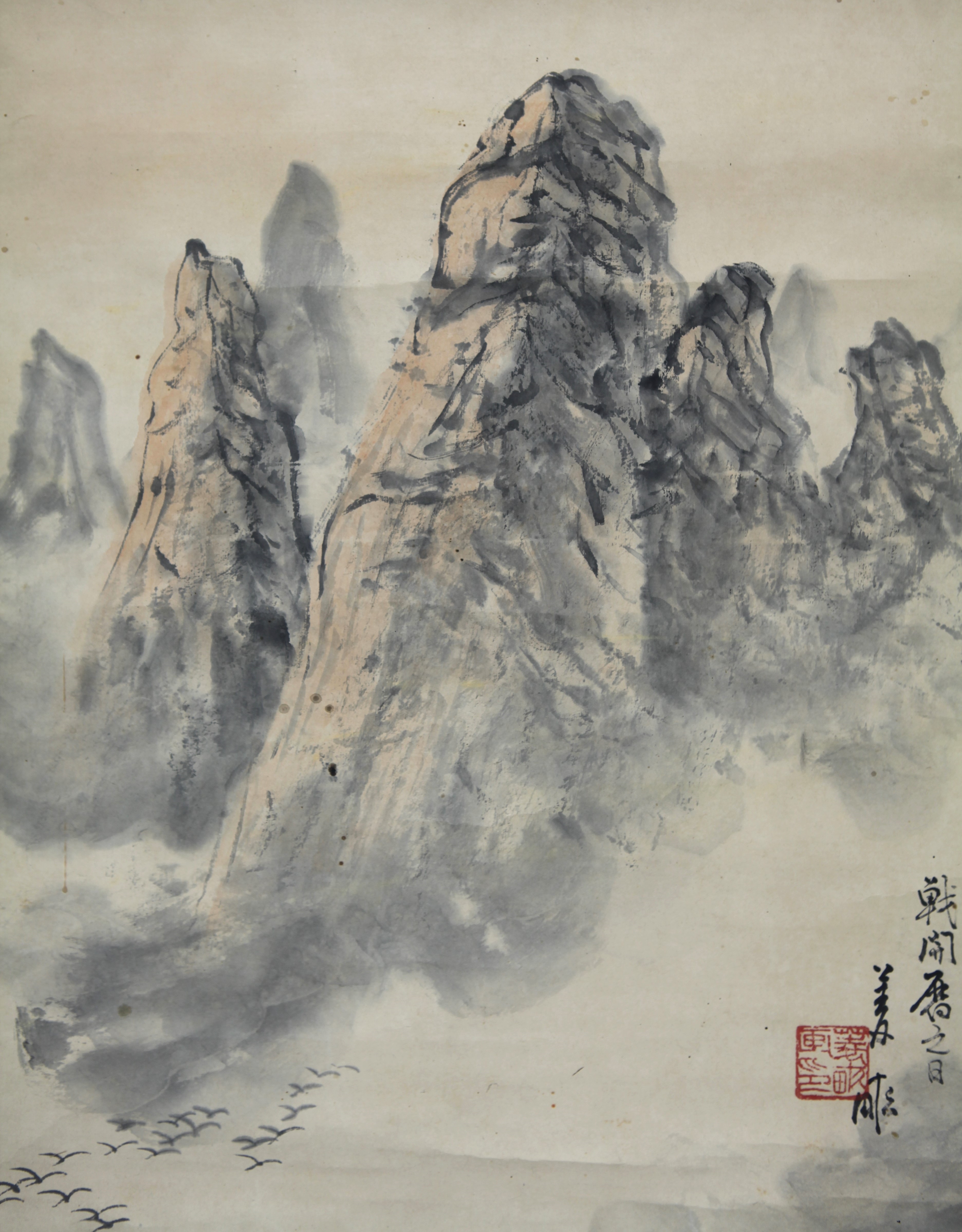| 【真作】【風車】 仙田菱畝 「万山皆武士」◎肉筆紙本◎新潟の人 昭和初期 荒木十畝、小室翠雲に師事 日本南画院 | ||||||||||||||||||||