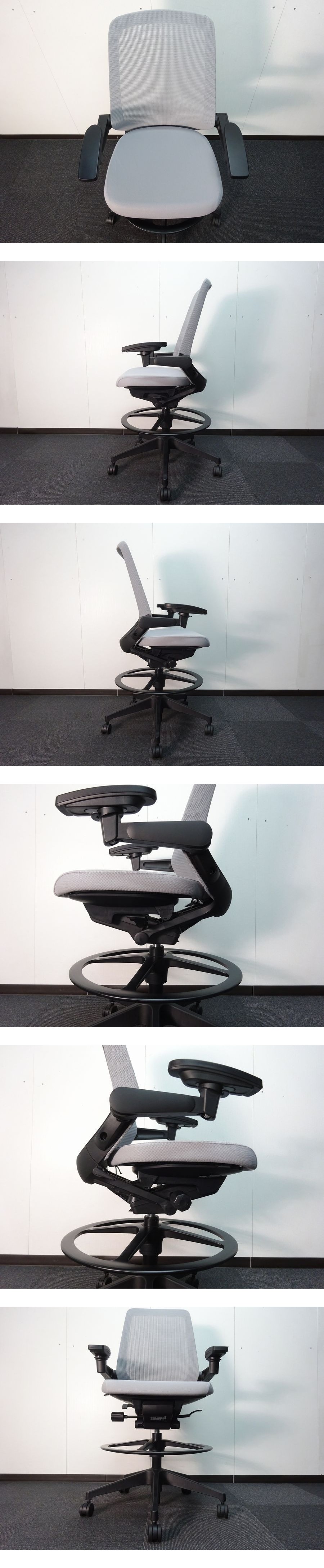 ・メーカー:イトーキ ・型番:KJ-177JVP1T1W6 ・サイズ:W590(脚680)×D550~600×H1115~1335×SH610~830 単位(mm) ・本体、肘受け、フレームカラー:ブラック ・張地カラー:ライトグレー ・脚カラー:ブラック ・定価:¥148,060 オフィスファニチャーブランド イトーキのノートチェア ハイポジションタイプ ハイバック アジャスタブル肘付です。インテリア性へのこだわりとハイパフォーマンスの両立。オフィス空間のインテリア性が高まるなかで、細部までデザインを追求。 長時間着座にも対応できる優れた機能性とデザインの融合で、上質な心地よさを生み出しました。 カジュアルな空間にも調和するデザインを目指し、樹脂部分の露出を抑え、背のフレームまでファブリックで包み、インテリア性を高めました。また、コンパクトな設計の中にも、基本機能は充実。可動肘は3Dアームとなり、自然な体勢で作業することができます。あらゆる方向へ移動しやすいリング状のフットレスト付きで、メッシュ状のデザインが、浮遊感のある印象を与え、快適な座り心地を提供します。 ■仕様 ・背:メッシュ張り ・座:布地張り ・背ブラケット:強化ナイロン樹脂 ・肘当て:発砲ウレタン一体成型 ・肘受け:強化ナイロン樹脂 ・足掛けリング:アルミダイキャスト塗装仕上 ・脚:強化ナイロン樹脂 抵抗付ウレタン双輪キャスター付 ■機能 ・アンクルムーブ・シンクロロッキング ・シートアングルストッパー ・ロッキング強弱調節 ・ベンディングシート ・ガス上下調節 ・座の奥行調節 ・可動肘 ■状態 ・こちらの商品は未使用品となります。運搬時の若干のスレはございますが、目立つキズなど無くとても綺麗な状態です。この機会にオフィス、ご自宅にいかがでしょうか! (※未使用とは…商品を開封し、設置等しましたが一度も使用せず保管していた商品となります。) | ||||