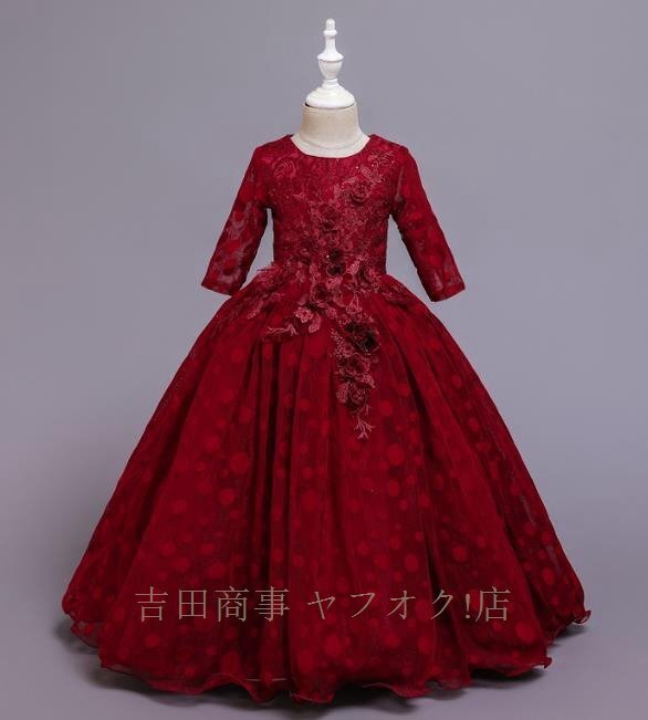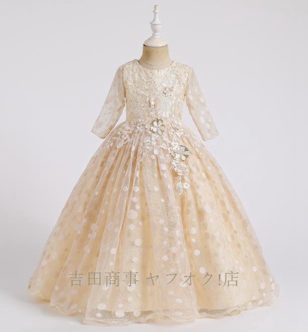 A6744☆新品子供 女の子 ガールズ フォーマル レース ドレスロングスカート長袖 オシャレワンピース 発表会 演奏会 結婚式 收藏