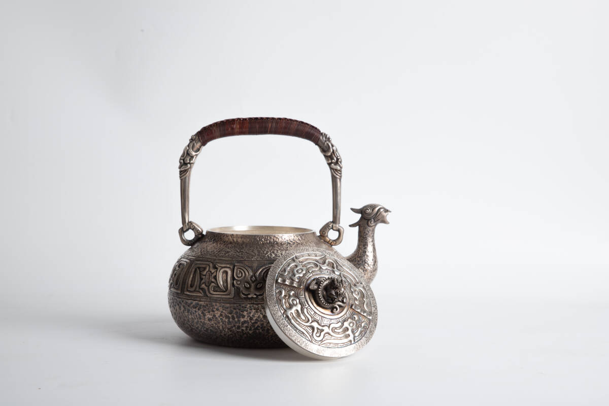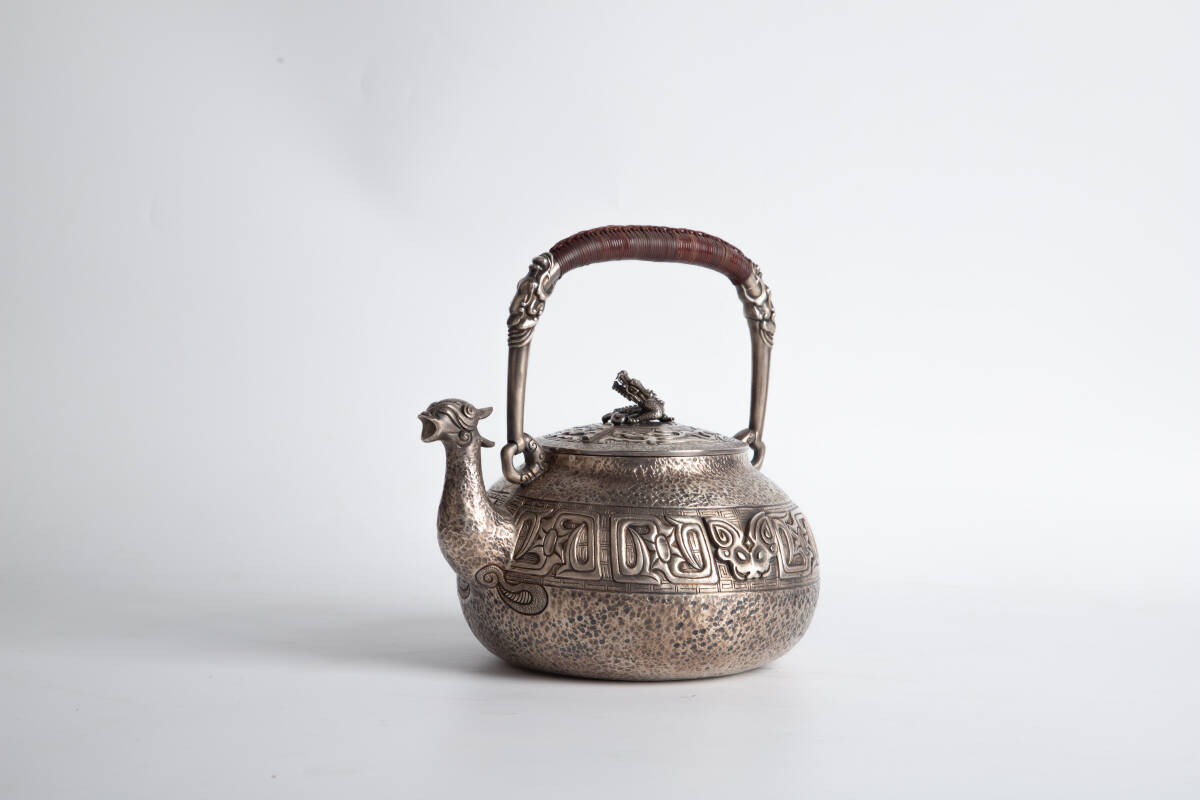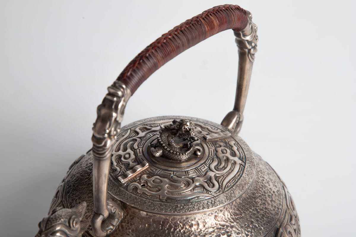 時代 純銀製 蔵六居造 龍形壺摘 饕餮紋 獣口湯沸 工芸品 美術品 銀瓶 煎茶道具 重量893G 收藏