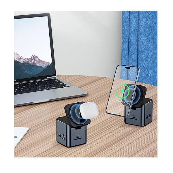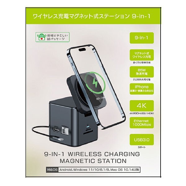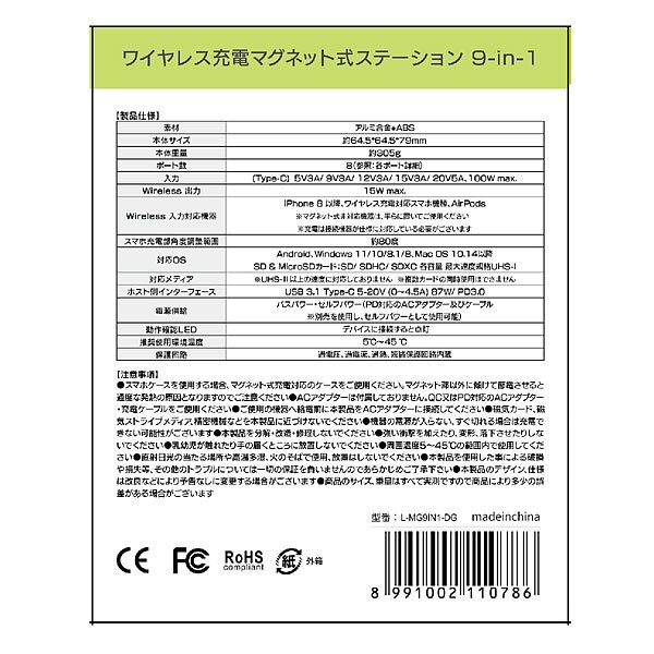 Lazos USB Type-C ワイヤレス充電 マグネット式 ステーション 9in1 [L-MG9IN1-DG]マグネット式非対応機器も平らに置いてご使用可能