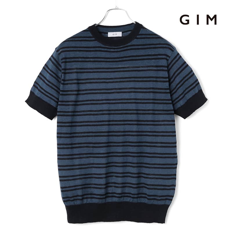 ◆【GIM(ジム)/春夏/オーガニックリネン12Gボーダー柄半袖クルーネックニット】[gim2380104-LL] 收藏