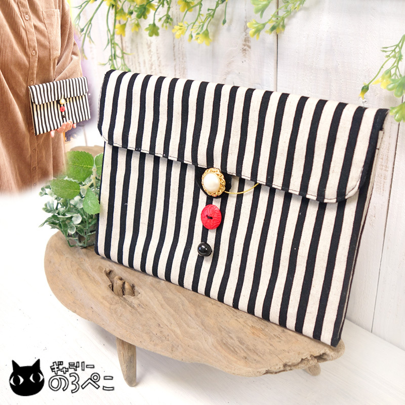 ストライプ模様のクラシックなマルチポーチ(クラッチバッグみたいにも使えるフラットポーチ) bc873-34 收藏
