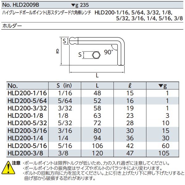 KTC ハイグレードボールポイント L型スタンダード六角棒レンチセット 9本組 HLD2009B (インチ) 收藏