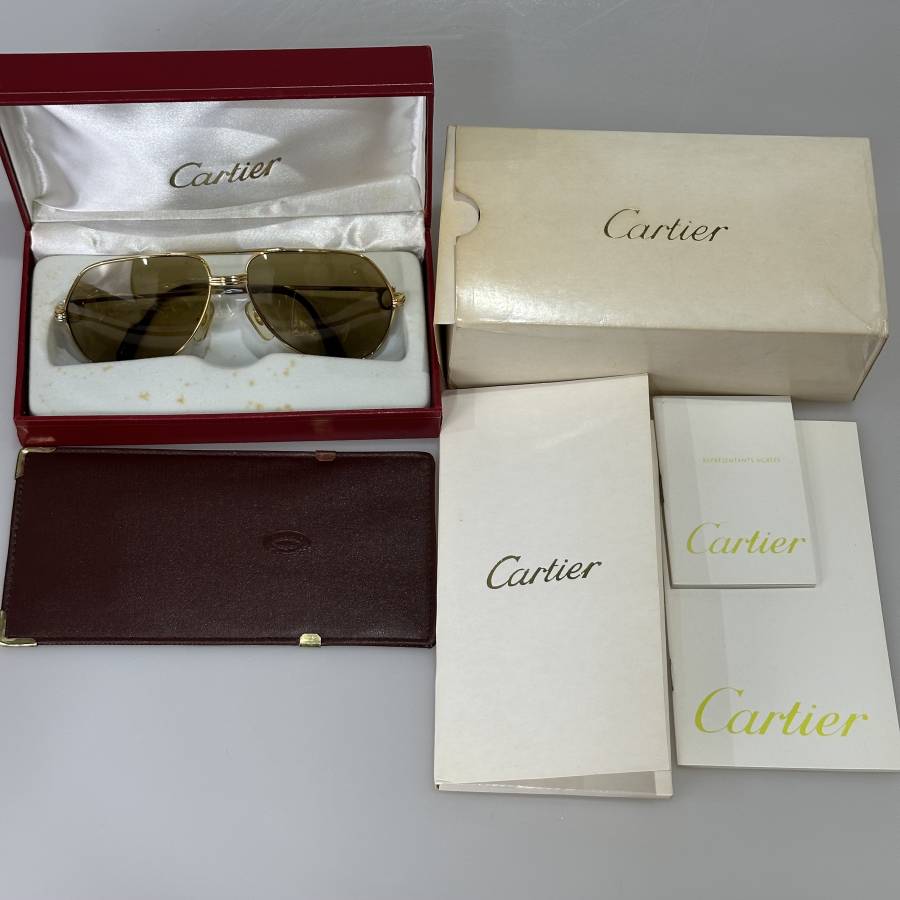 良品!!Cartier カルティエ【290188】ブラウンレンズ 59□14 サントス ティアドロップ型 140 サングラス フランス製 收藏
