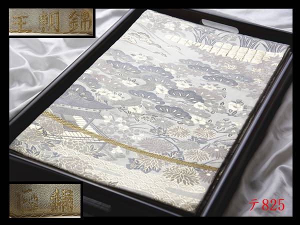 蔵【テ825】西陣逸品 王朝錦 シルバー色地 正絹純金糸六通高級美術袋帯 ◇検◇簪着物名古屋帯和装小物帯締め 收藏